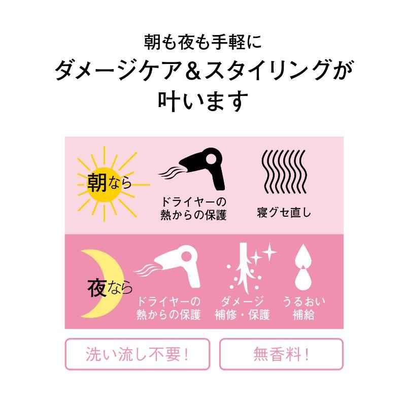 美髪成分*たっぷりで、シュッとひと吹きすればうるおうツヤ髪に。寝ぐせ直しやスタイリング前、ドライヤー前に使えばうるおいを閉じ込めたサラサラの美髪に整います。